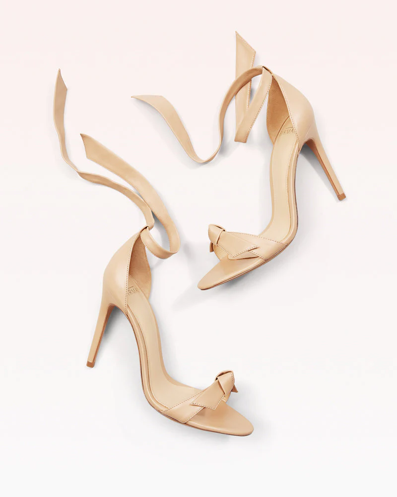 Our signature style, the Clarita Sandal is defined by two bow accents and a striking stiletto heel. This modern classic is hand-crafted from smooth leather. Showcase yours with cropped hemlines or with a midi wedding dress for the future bride.