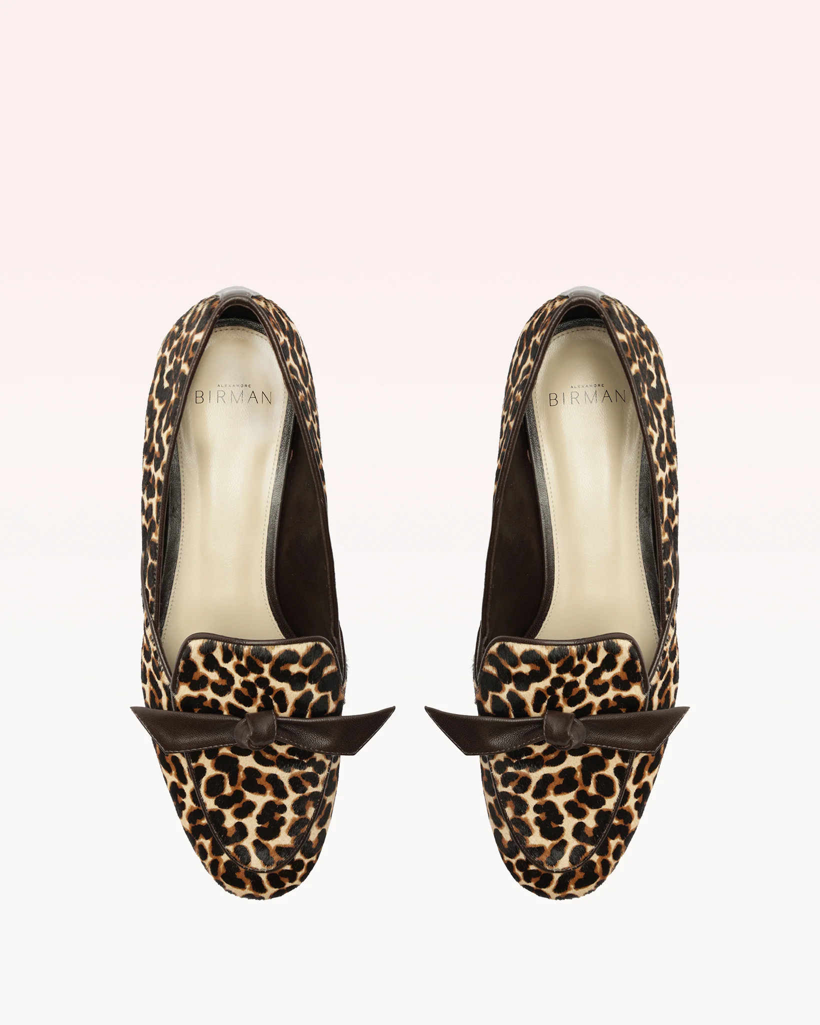 A timeless smoking loafer elegantly crafted with leopard pony for a touch of wild sophistication. At the forefront sits a slim Clarita bow, crafted with finesse from nappa leather, creating a striking contrast against the classic loafer silhouette. This infusion of timeless style with a hint of playful, animal-inspired detail makes this loafer a standout piece.