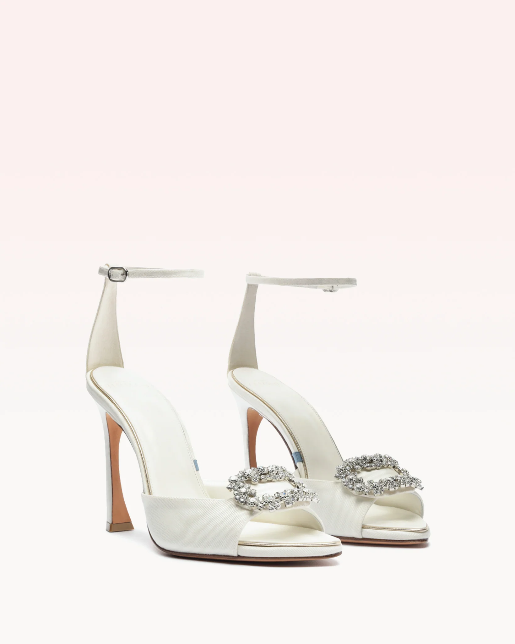Topped with a crystal ornament at its upper, the Isla Crystal Bridal heel is timeless and trendsetting at once. The artful curved stiletto heel, along with a classic ankle-strap closure, makes it a standout choice for fashion-forward brides.