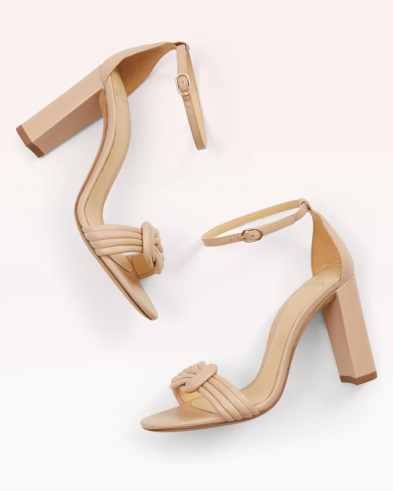 This versatile silhouette is crafted from smooth leather and features our signature knotted design. The high-block heel adds both comfort and style to this day to night shoe.