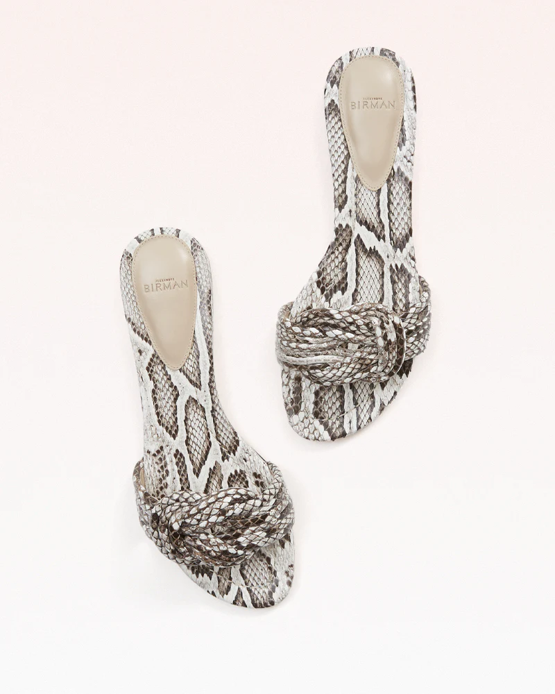 The ultimate casual slide, elevated by snakeskin craftsmanship and a knotted strap.